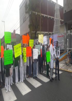 Añadió: cabe recordar que nosotros laboramos para el IMSS y que en forma tramposa la empresa nos ha dado trabajo al contratarnos por honorarios que es una manera de evadir lo que marca la ley federal del trabajo y que nosotros médicos enfermeras ingenieros biólogos desde nuestra contratación no nos han dado aguinaldo vacaciones derecho a incapacitarnos y negarnos el derecho a la maternidad ya que nos amenazan que si nos embarazamos nos van a despedir y es contradictorio trabajamos para el IMSS y no tenemos derecho al IMSS, igual no se nos inscribe al INFONAVIT.