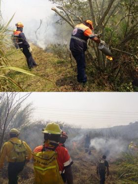 Valencia Argüelles sostuvo que con apoyo de herramientas de zapa e hidráulicas así también, dispositivos de encendido a fuego vivo (antorchas), se realizó la práctica de quema en una extensión aproximada de 1/2 hectárea la cual a partir de establecimiento de líneas negras líneas húmedas brechas y líneas de seguridad se controló.