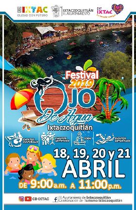 Ixtaczoquitlán, Ver. - El H. Ayuntamiento de Ixtaczoquitlán que encabeza el alcalde Miguel Ángel Castelán Crivellí a través de la coordinación de Turismo invitan a la población en general al Festival Ojo de Agua 2019 que se llevará a cabo durante los días 18, 19, 20 y 21 de abril en el balneario Ojo de agua.