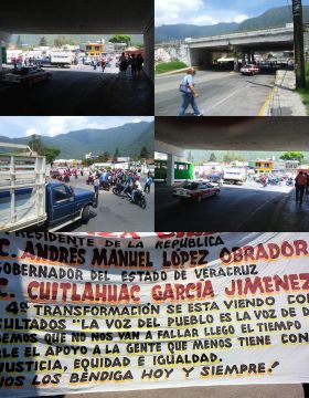 Desde las 14:30 horas se observó el peregrinar de la gente molesta que iba hacia sus destinos caminando. Para hacer más grande su presencia los manifestantes, minutos antes de las cuatro de la tarde bloquearon también los carriles de subida y bajada de la autopista México - Veracruz en el mismo punto a dónde llegaron.