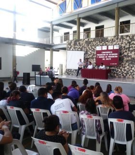 Previamente el coordinador de Educación del H. Ayuntamiento, Enrique Jiménez Hernández, hizo la presentación del ponente y agradeció al alcalde Guillermo Mejía Peralta, el apoyo   ...