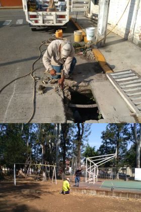 Las brigadas adscritas al Ayuntamiento colocaron tapas de registro y alcantarillas; realizaron bacheo en calles y avenidas; reparación del alumbrado público; poda de árboles, arbustos y áreas verdes; mantenimiento y pintura a puentes; reparación a los columpios de la calle 7 de enero; limpieza en los ríos de respuesta rápida; aplicación de pintura a guarniciones y balizamientos de calles.