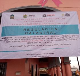 Tlaquilpa, Veracruz.- Con la finalidad de motivar el pago de impuestos de los sitios donde los habitan, el Gobierno del Estado en Coordinación con el Ayuntamiento que preside la alcaldesa Martha Tentzohua Sánchez ha iniciado un programa de Regulación Catastral 2019 que dio comienzo el pasados 15 de octubre y finalizará el próximo 15 de diciembre.