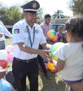 Camerino Z. Mendoza. -Porque la sonrisa de un niño es el mejor regalo de amor, la Dirección de Tránsito y Vialidad Municipal de Camerino Z. Mendoza, realizó la entrega de más de 250 juguetes a niños y niñas de la congregación de Ejido La Cuesta para cumplir la encomienda de "Melchor, Gaspar y Baltazar" de regalar sonrisas a los más pequeños.