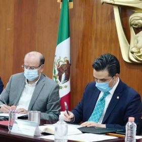 El director del Instituto Mexicano del Seguro Social (IMSS), Zoé Robledo, y el dirigente del Sindicato Nacional de Trabajadores del Seguro Social (SNTSS), Arturo Olivares Cerda , firmaron el acuerdo para atender a población no derechohabiente en el marco de la emergencia nacional sanitaria por COVID-19.