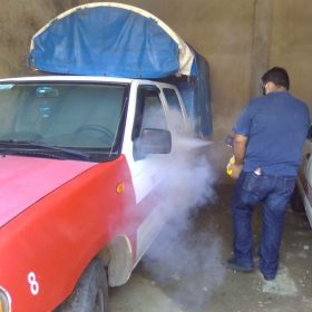 Zongolica, Ver.- "Un promedio de 100 unidades de taxis, mixto rural y transporte turístico son desinfectadas diariamente con una máquina termo nebulizadora por personal del Sindicato de Transportistas Multimodal en la Sierra de Zongolica", afirmó Adán Sandokan Hernández Vallejo .