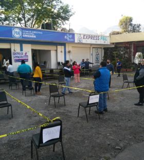Felipe Villanueva. La Perla, Ver. - Pese a no ser un municipio de alto riesgo por presencia del Coronavirus, autoridades de Protección Civil, Tránsito del Estado y policía local, establecieron un filtro sanitario en esta localidad serrana en las faldas del volcán Pico de Orizaba.