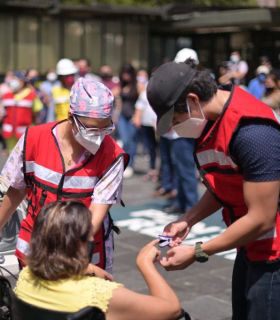 Previamente, se distribuyó a quienes ingresaron al inmueble un tríptico en el que se describe las acciones a realizar antes durante y después de un sismo.