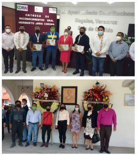 Ellos fueron los encargados de entregar los reconocimientos y medallas a los destacados nogalenses. En el ramo del deporte fue galardonado el deportista recientemente fallecido, Rubén Raúl Bernal Arroyo , nacido en 1948, en 1965 gana la competencia de los 400 metros planos en el campeonato nacional de atletismo. Portador de la antorcha olímpica en nuestro país en 1968, así como en los juegos americanos en el año 2014, acumuló más de 300 medallas en el deporte en encuentros estatales, nacionales e internacionales; falleció este año, por lo que la medalla fue recibida por su hijo.