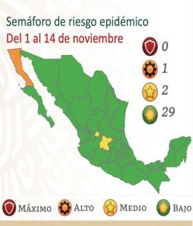 Salud coloca a 19 estados en Verde, 8 en Amarillo y 4 en Naranja.