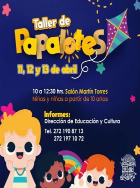 Río Blanco, Ver. - La dirección de Educación y Cultura invita a los niños rioblanquenses a imaginar, crear y volar con el Taller de Papalotes, que se realizará los días 11, 12 y 13 de abril en el salón Martín Torres.