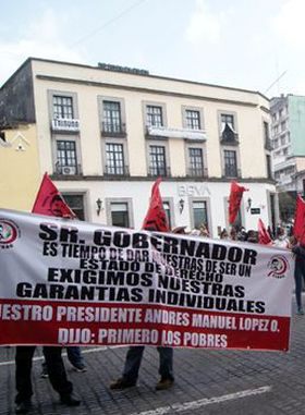 Un reducido grupo de personas que se dicen ser integrantes de la Central Independiente de Obreros Agrícolas y Campesinos (CIOAC), que Dirige Ramón González Gómez , crearon un caos vehicular enfrente a Palacio de Gobierno por unos minutos al bloquear la Calle de Enríquez, ya que exigían una audiencia con el Ejecutivo del Estado, para exponerle que la Jueza de Control Norma Landa Villalba , giro una Orden de Desalojo en un plazo de diez días, el cual vence el día miércoles 19 del mes en curso, dicho desalojo lo pretende realizar en el predio Jinicuil Manso, de la zona boscosa "Sierra Alta" perteneciente al Municipio de Coatepec, teniendo dicha zona una área de 2 mil hectáreas, indicando según el Dirigente de ese grupo que llevan años habitando dicho lugar, siendo que algunos de los integrantes de esa Organización fueron vinculados a proceso por el delito de despojo, eso es el resultado de las denuncias interpuestas por los legítimos propietarios de los predios de la Congregación Tapachapan perteneciente al Municipio de Coatepec, quienes los han señalado de realizar deforestación en dicho lugar, por lo que el Líder de esa agrupación dijo que no se van a salir y que van a defender sus espacios con todo la fuerza que sea necesaria…