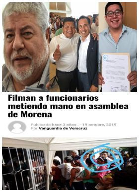 Resulta que se detectaron actos de corrupción con "los honestos", pues el operador de Cuitláhuac García Jiménez y el aún dirigente estatal de MORENA Esteban Ramírez Zepeta , de nombre Edgar Gustavo Chávez Palacios cobra en SEDESOL Veracruz y por el Partido MORENA como coordinador y enlace territorial. Y están obligado a los servidores de la nación a llevar a 200 personas el día de la asamblea y obligarlos a afiliarse. Cabe mencionar que esta asamblea se realizará el 30 de julio del presente año.