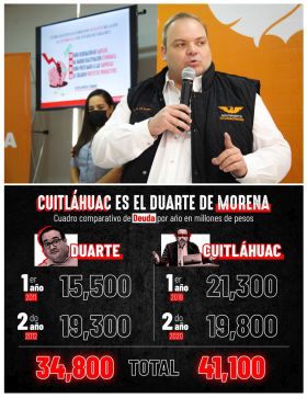 Sergio Gil Rullán , Coordinador Estatal de Movimiento Ciudadano acusó que "Cuitláhuac, es el nuevo Duarte", pues entre el primer y segundo año contrajo una deuda de 41 mil 100 millones de pesos, 6 mil 300 millones de pesos más que su antecesor, hoy preso en el Reclusorio Norte.