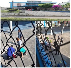 Este alumno, llamó la atención de profesores y alumnado, al subir hasta el tercer piso y lanzarse sin miedo alguno a la muerte. El menor de edad pegó en el piso fracturándose diversas partes del cuerpo.