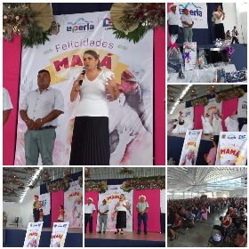 La Perla, Ver.- Cientos de madres de familia de la cabecera y comunidades aledañas, acudieron al auditorio municipal este martes 09 de mayo para ser agasajadas por personal del Ayuntamiento que encabeza la alcaldesa, Ruth García Meza , en un prefestejo del Día de las Madres.