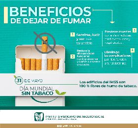 En el marco del Día Mundial Sin Tabaco , la neumóloga del Hospital General Regional (HGR) No. 1 de Orizaba, Giovanna Cuapanteca Díaz , indicó que el Instituto realiza campañas permanentes para informar y sensibilizar a la población en general sobre lo que produce el ser un fumador activo y pasivo.