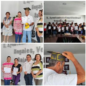 En la sala de cabildo, Beatriz Hernández Bonilla , directora de educación municipal y María de la Luz Sánchez Pozos , directora del IMMUJER, felicitaron a las personas que finalizaron tales niveles educativos, pues ello muestra que nunca es tarde para aprender, adquirir nuevos conocimientos.