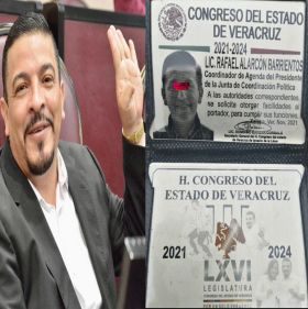 Siguen los "honestos", quienes en realidad son pillos operadores de otro delincuente como es el presidente de la Junta de Coordinación Política del Congreso de Veracruz, Juan Javier Gómez Cazarín , alias "El Carón" quien nuevamente está en el escándalo por la detención de otro de sus colaboradores, Rafael Alarcón Barrientos , quien "charolea" con credencial del Poder Legislativo. Lo interesante es que Gómez Cazarín otorga credenciales a sus primos, parientes, cobradores de moches, grupos criminales y hasta borrachos que son detenidos por policías de la Secretaría de Seguridad Pública, presentan su cargo en el Congreso Local y lo dejan libre.