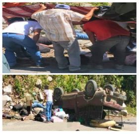 Zongolica, Ver. - Al menos tres personas fallecieron y cinco más están heridas, luego de que una camioneta que ofrecía transporte Mixto Rural, volcó debido a una falla mecánica que provocó que el conductor perdiera el control hasta que ésta unidad volcara y lanzara a sus ocupantes, la camionetita todavía alcanzó a aplastar a algunas de las personas.