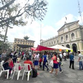 Plantón frente a palacio de Ixtaczoquitlán.