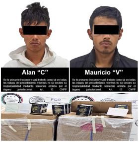 Elementos de la Agencia de Investigación Criminal (AIC), adscritos a la Fiscalía General de la República (FGR), en su Fiscalía Federal en Tlaxcala, lograron la detención de Mauricio "V" y Alan "C", quienes trasladaban mil 328 libretas para pasaportes robados a la Secretaría de Relaciones Exteriores (SRE).