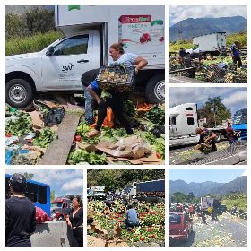 Un lesionado al volcar torton cargado con verduras.
