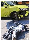 Orizaba, Ver.- Un fuerte choque se registró entre una motocicleta y un vehículo particular, dejando a una persona lesionada