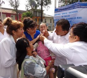 El alcalde Migue Martínez Martínez en compañía de la presidenta del DIF, Magaly Ramírez Hernández encabezaron el evento junto a la coordinadora de epidemiologia de la Jurisdicción Sanitaria 7, Guadalupe Canales, ahí se dieron a conocer las metas para esta semana en el municipio donde se aplicaran dosis de poliomielitis que se trata de erradicar este enfermedad en el país.