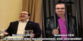 Era solo una fotografía…Un llamado Meme que nos compartieron… La subimos al Facebook el 31 de diciembre del 2015 y ésta ha sido compartida cientos de veces y cientos de veces más, le han dado click en Me Gusta, aunado con decenas de comentarios apoyando el mismo clamor titulado "Mi mejor deseo"… En la gráfica se muestra dos secuelas: En una, la fotografía de Javier Duarte riendo de forma exagerada y gesticulando de igual manera, con la leyenda "Diciembre del 2015"… En la otra, el cuerpo de un hombre más delgado tras las rejas y yuxtaponiendo la cara del actual Gobernador de Veracruz, con la leyenda "Diciembre del 2016… Si nos unimos todos los veracruzanos, esto será posible", remata la fotografía…